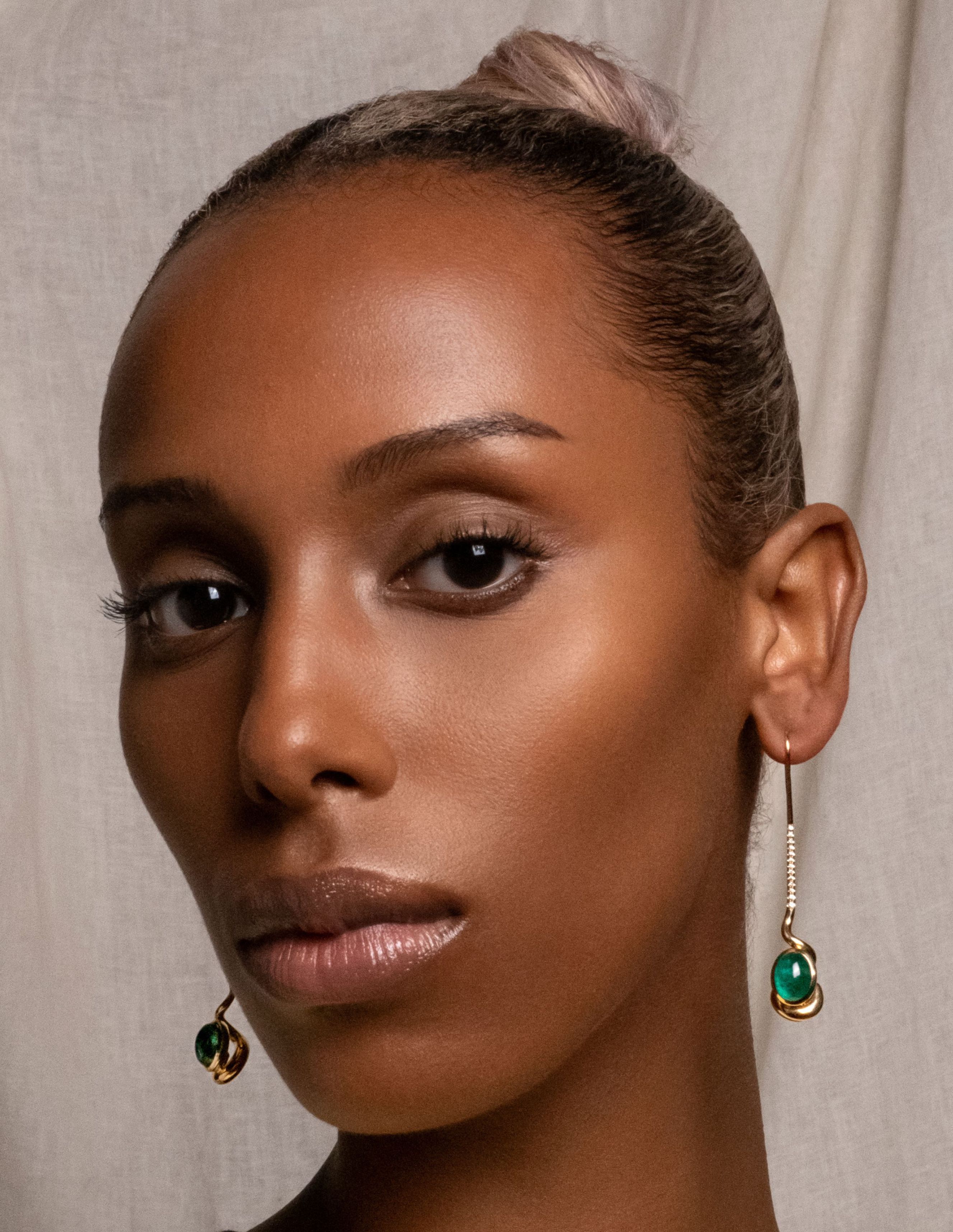 18K Gold Naima Drops with Emerald Cabochon, Graduated Emeralds & Diamonds